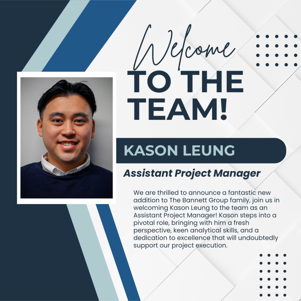 We are excited to officially welcome Kason Leung as the newest addition to The Bannett Group construction family, stepping into the vital role of Assistant Project Manager! Kason brings a wealth of fresh perspective and valuable expertise to our dynamic environment,...